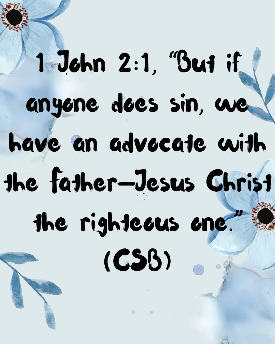 The second one, is that I have the ultimate advocate! During that time of prayer a verse from the Bible came to mind reminding me that Jesus is my advocate and he goes to the Father on my behalf. The verse is 1 John 2:1, “But if anyone does sin, we have an advocate with the Father—Jesus Christ the righteous one.” (CSB)